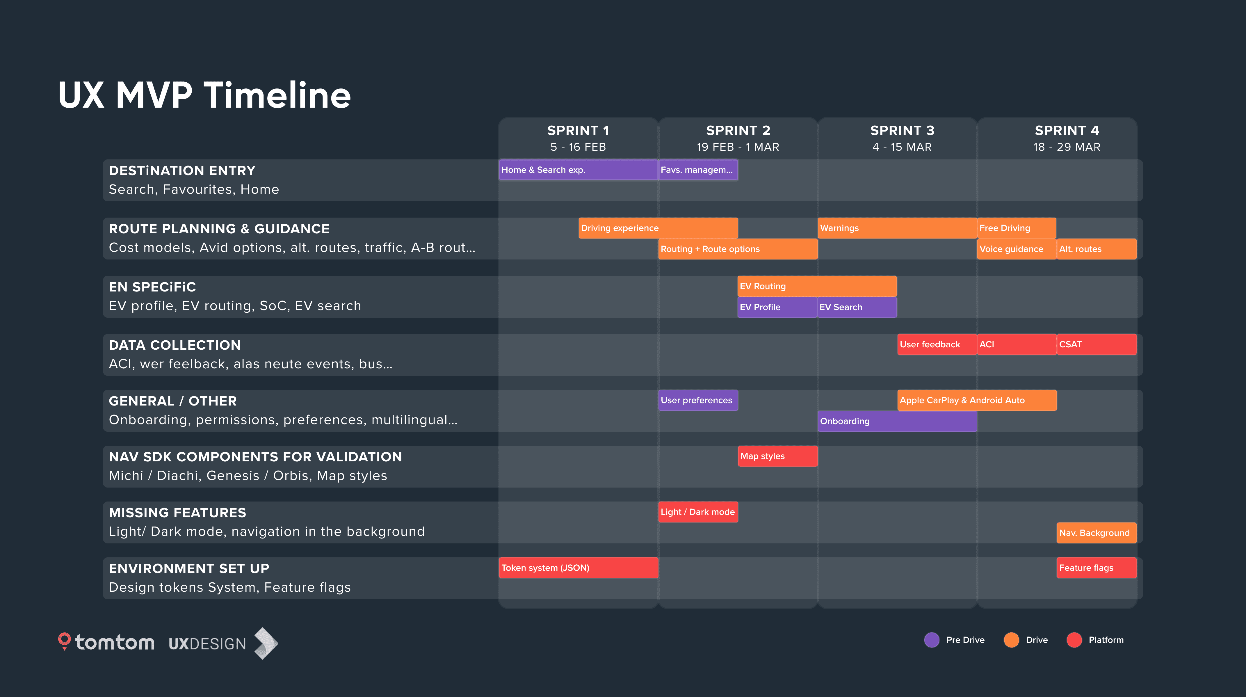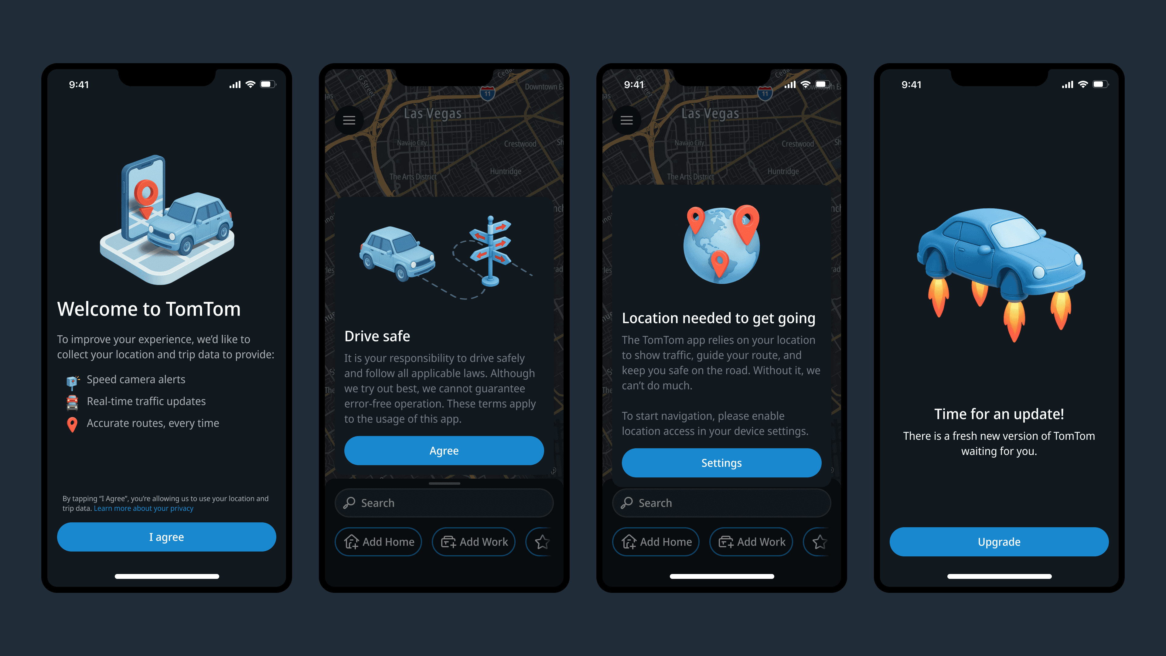 I led the UI execution for TomTom’s new mobile navigation app, shaping a modern experience used by over 1M users. As a senior IC, I partnered with product and engineering to ship core navigation flows and user-driven improvements that supported 100% user growth during rollout.