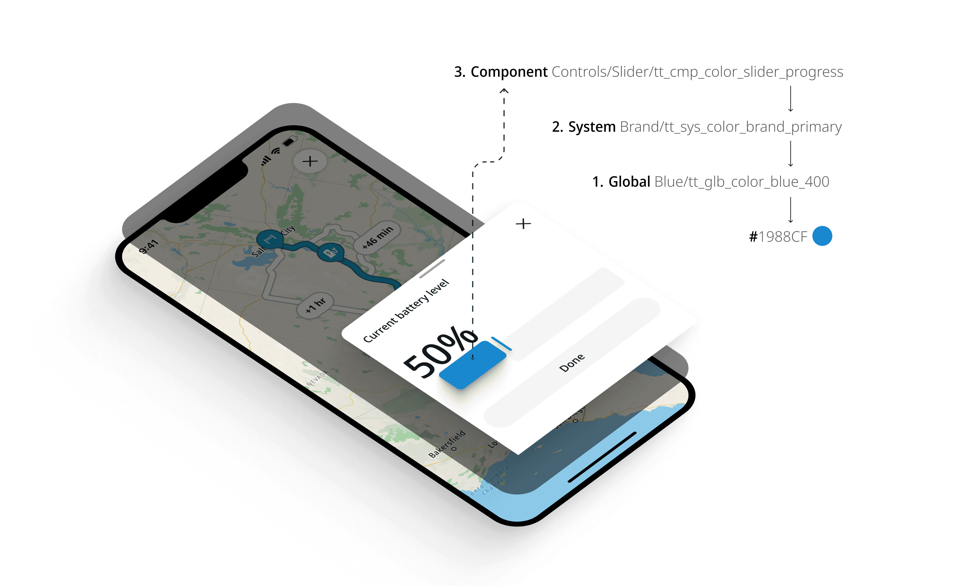 Maintained visual consistency across screens despite limited component maturity via a more flexible design system architecture with a component specific third level of abstraction in the token structure