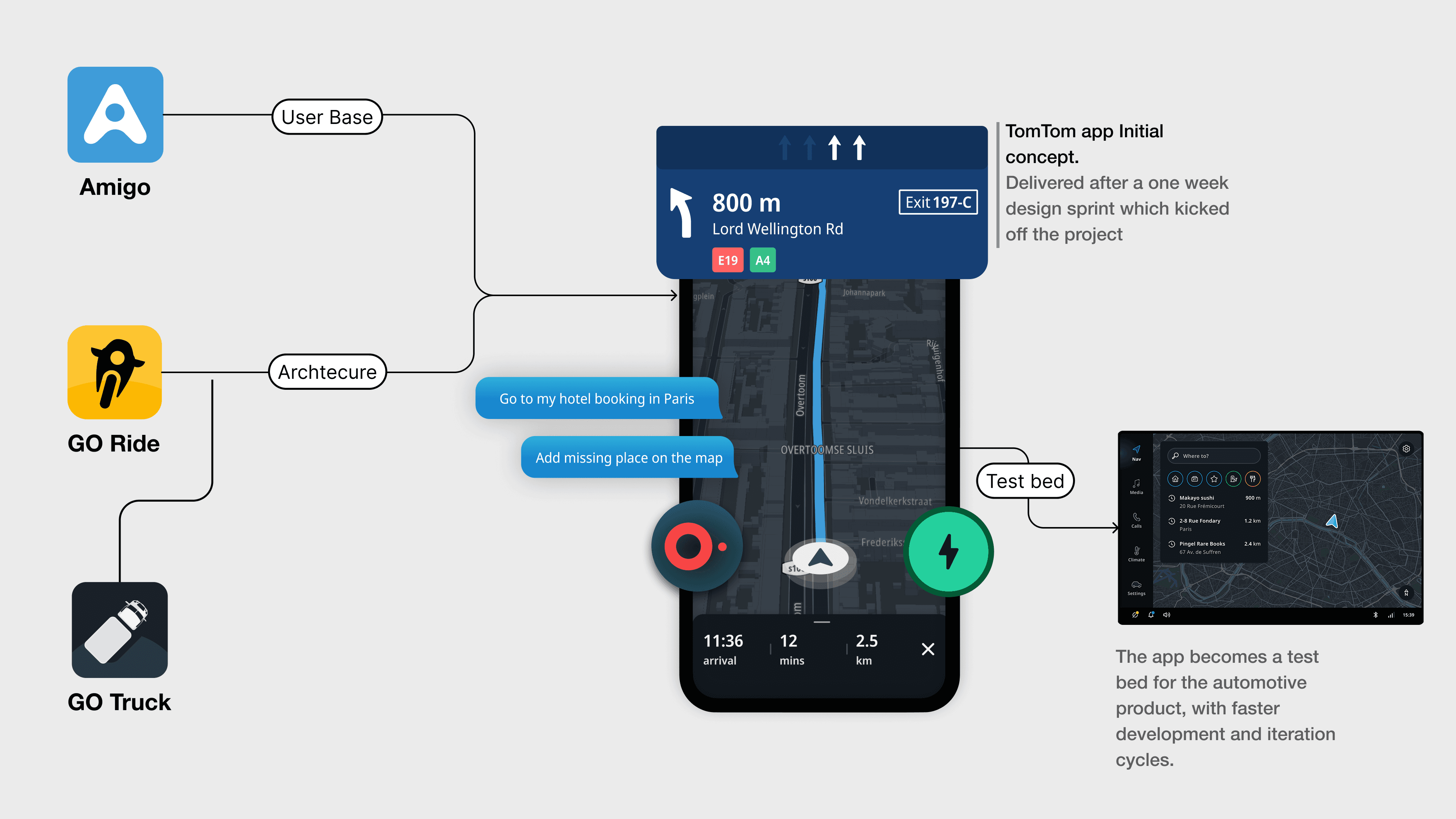 TomTom consolidated multiple consumer mobile apps into a single flagship navigation experience. The goal was to modernize the UI, migrate an existing user base, and establish a product led foundation that could scale across mobile and automotive products.